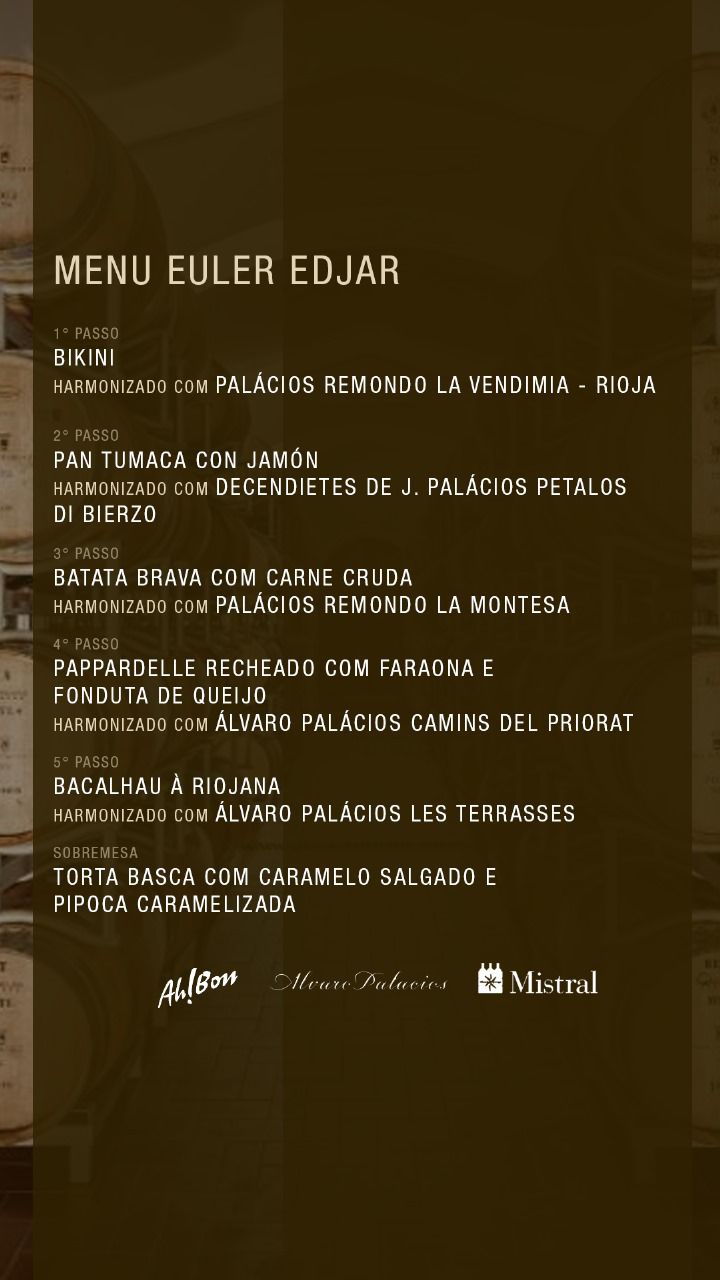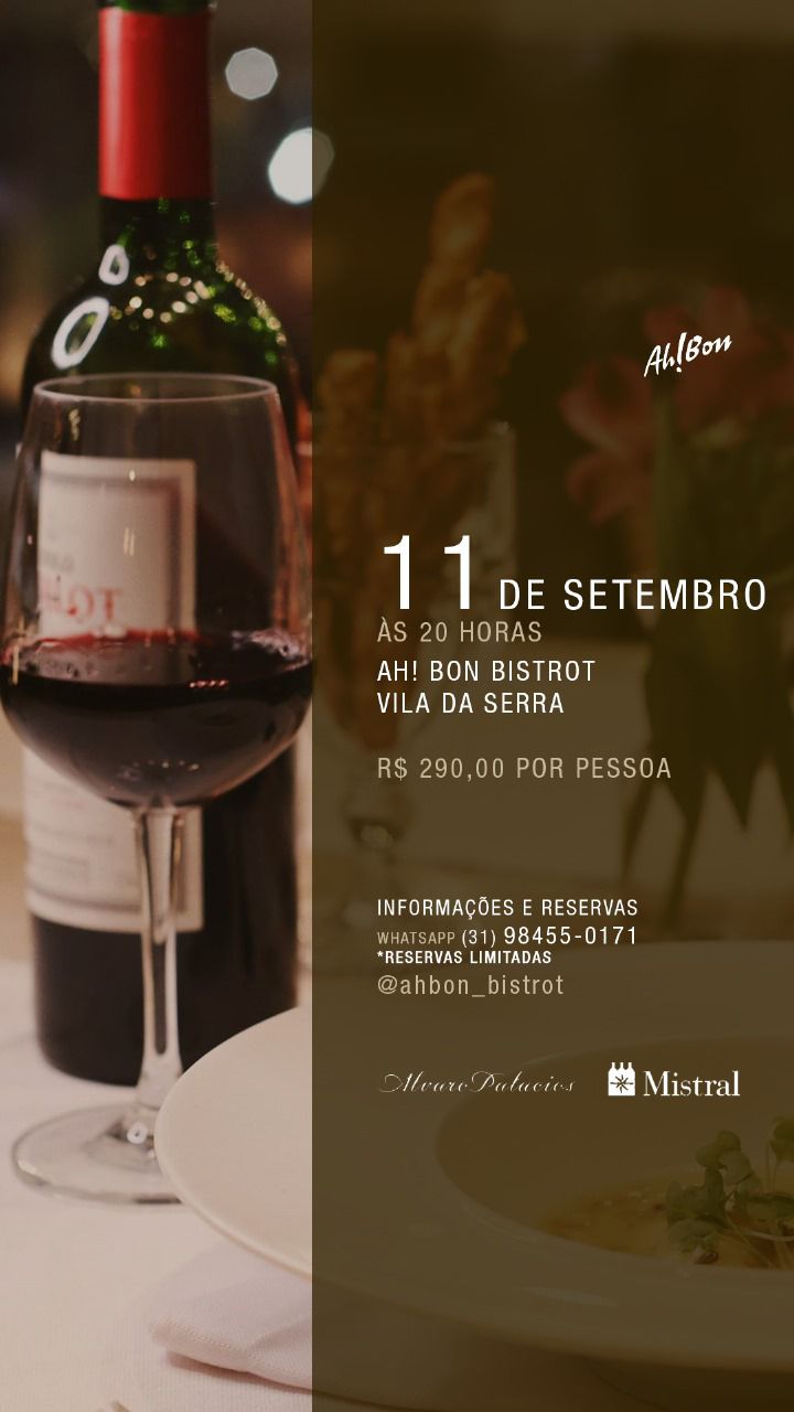 No próximo dia 11 de setembro, o Chef Euler Edjar recebe o embaixador da marca Álvaro Palácios,Thiago Fakury, para apresentar os vinhos espanhóis (Rioja, Bierzo e Priorat) em mais um Jantar Harmonizado no Ah! Bon Vila da Serra, tradicionalmente às 20 horas.