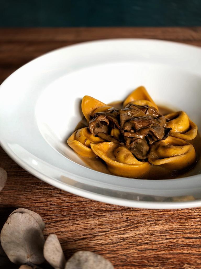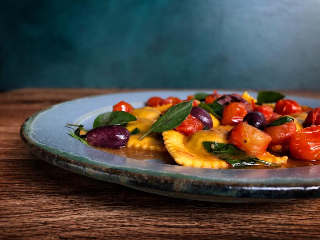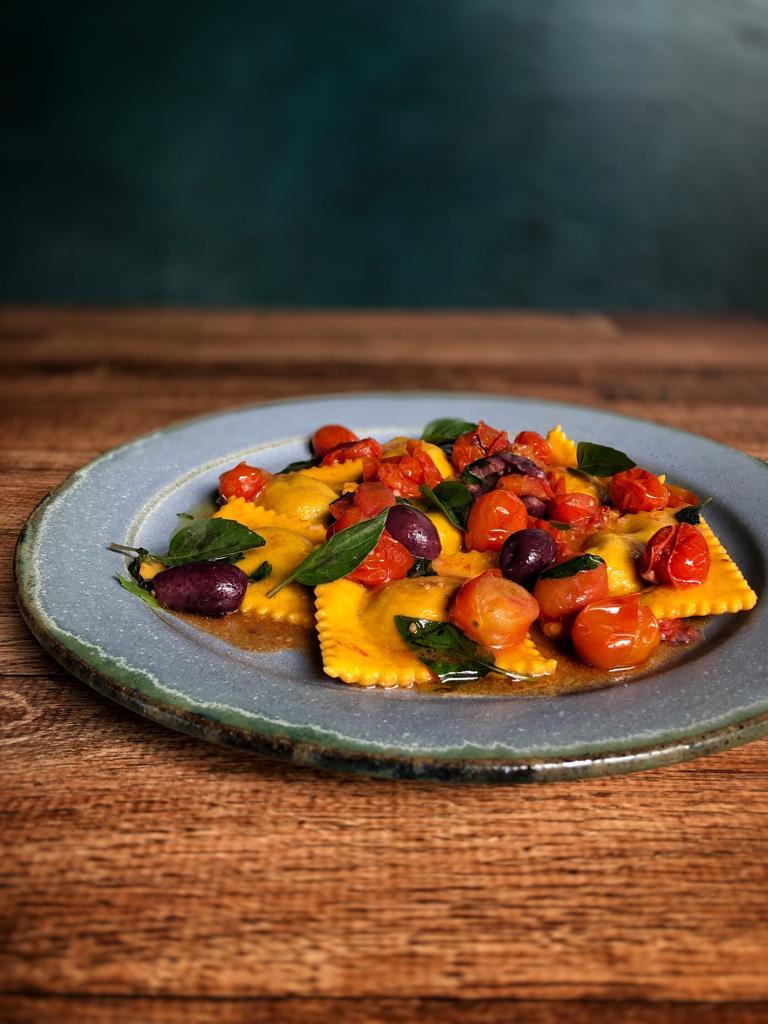 – Ravioli de bacalhau com tomate confitado e tapenade de azeitonas