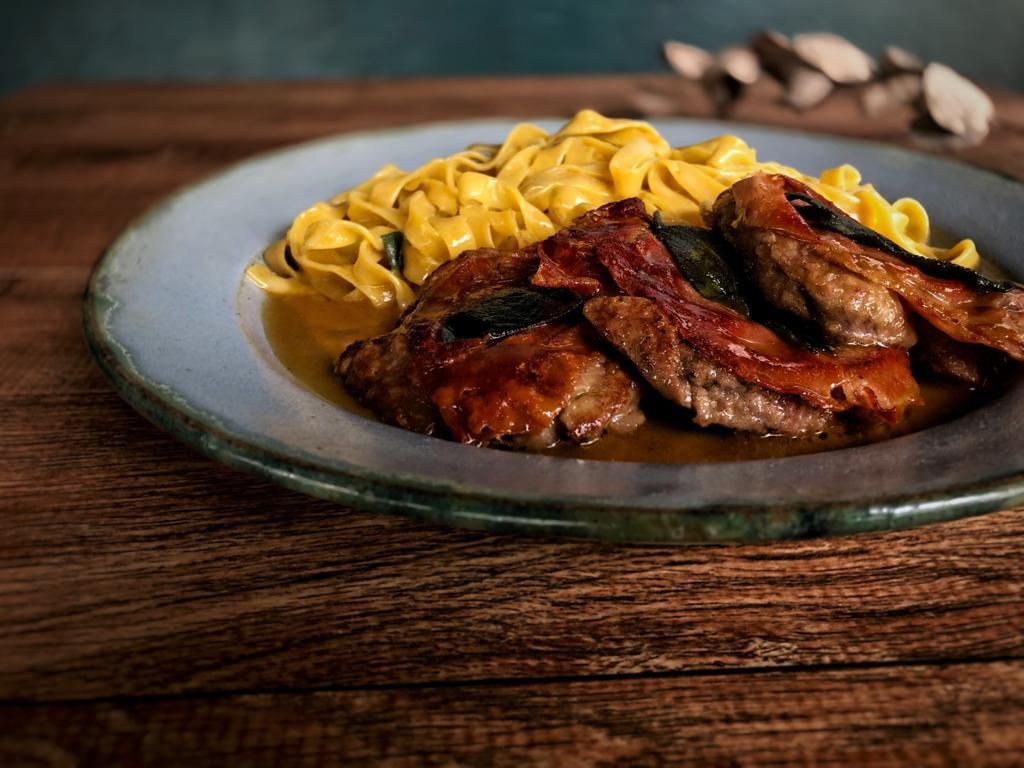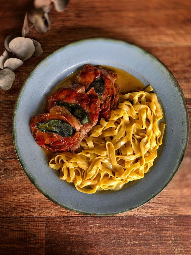 – Saltimboca Alla romana com tagliatele na manteiga e sálvia